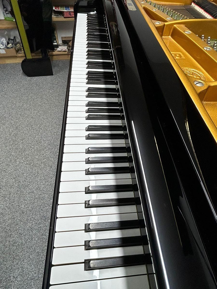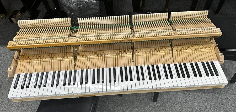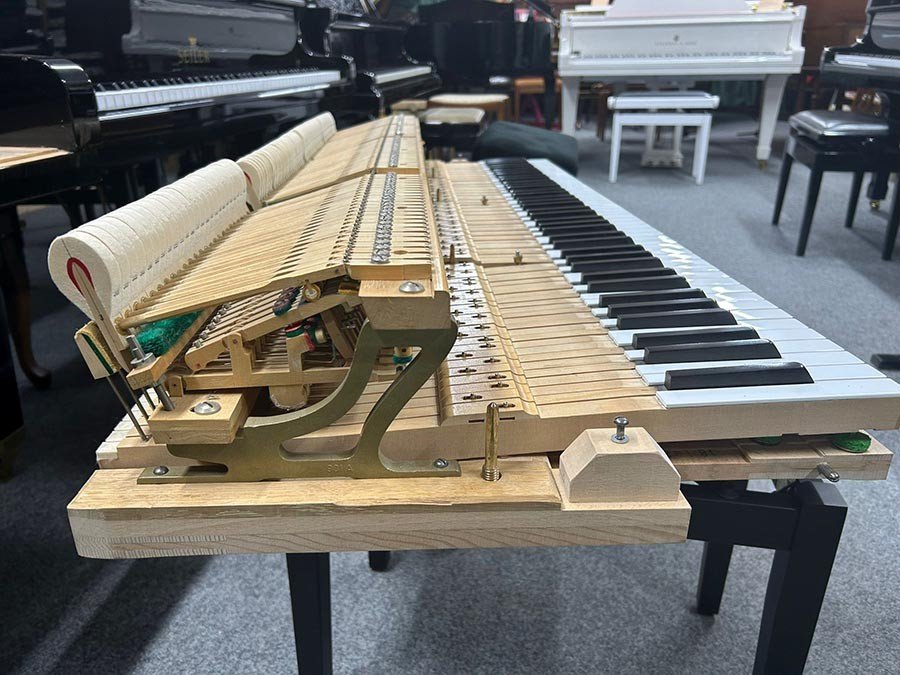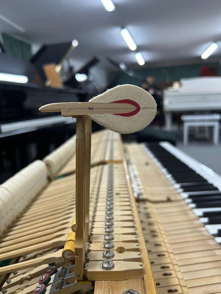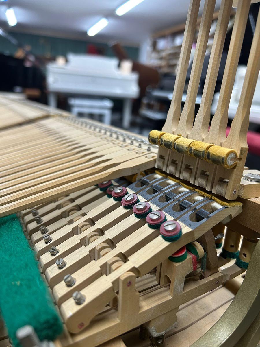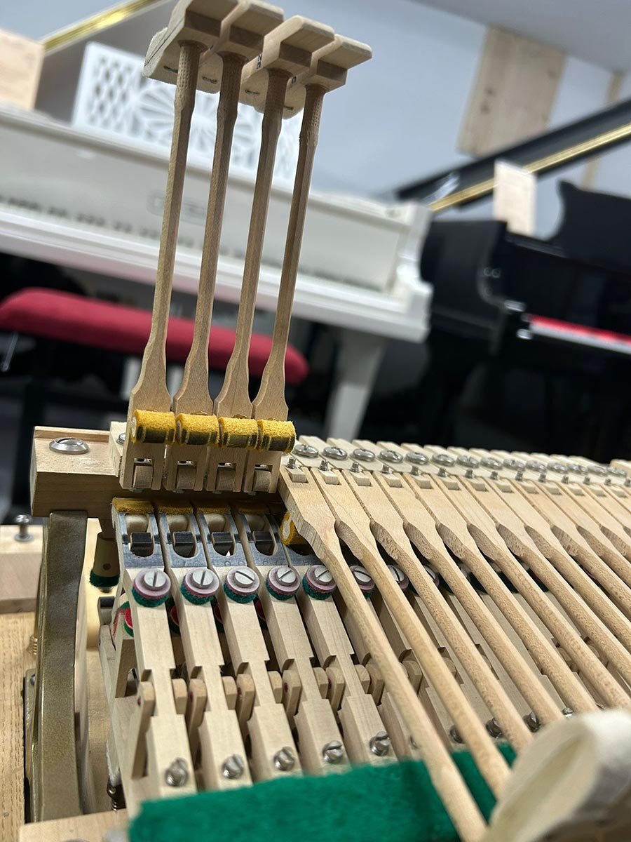 Um ein angenehmes Spielgefühl zu ermöglichen wurden die Tasten gerade gelegt und die Mechanik umfassend und nach allen Regeln des Klavierbaus reguliert.