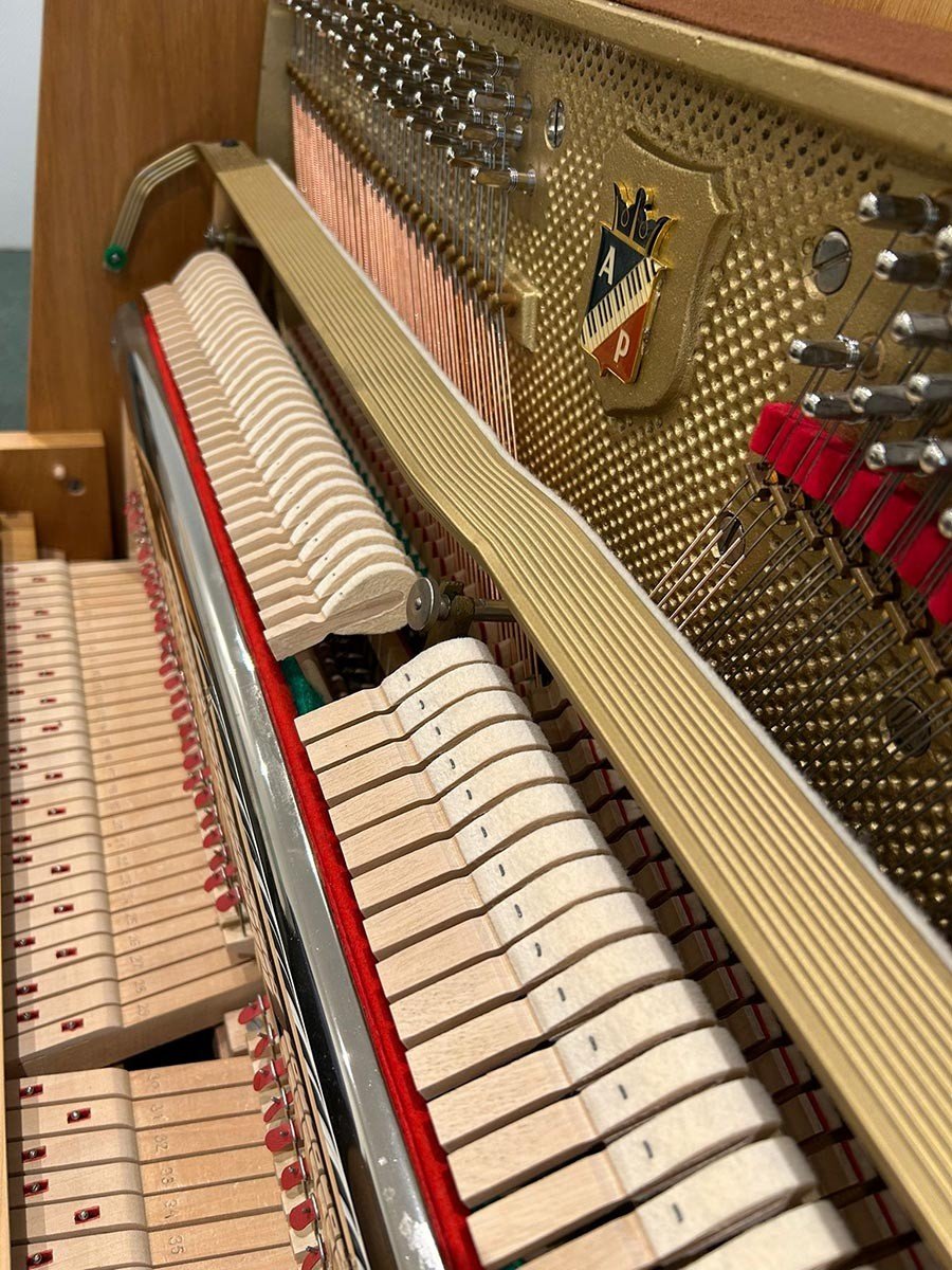 In unserer Fachwerkstatt wurden die Hammerköpfe abgezogen und die Mechanik reguliert. Ebenso wurden die Tasten geradegelegt und poliert. Auch die Messingteile sind poliert worden. |