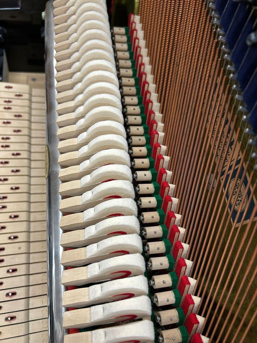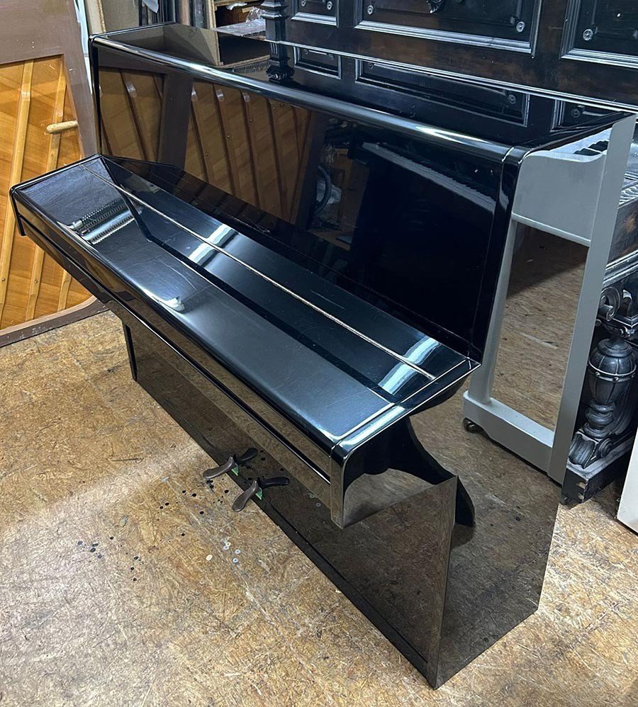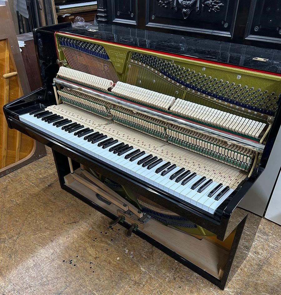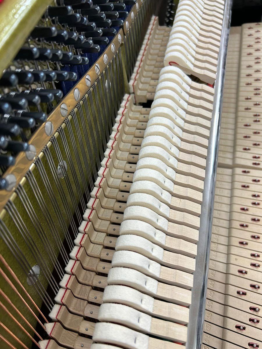 Weitere Informationen In unserer Fachwerkstatt wurden die Hammerköpfe abgezogen und die Rennermechanik reguliert. Die Hammer- und Hebegliedachsen wurden ausgetauscht. Die Tasten geradegelegt und poliert. Auch die Messingteile und das Gehäuse sind poliert worden.