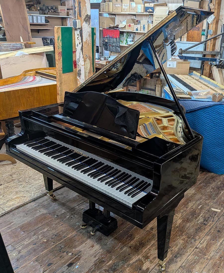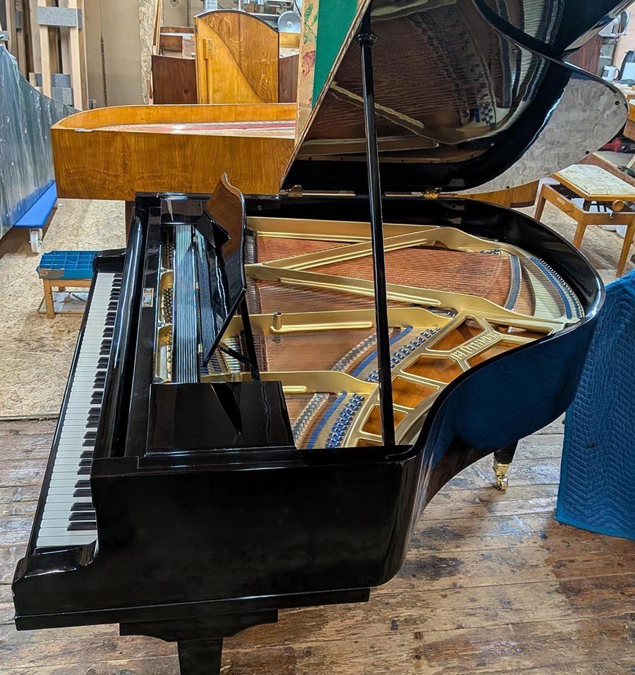 | Weitere Informationen | In unserer Fachwerkstatt wurden die Hebegliedachsen ersetzt. Ebenso wurde die Mechanik umfassend reguliert, die Klaviatur ausgewogen, Gehäuse, Tasten und alle Messingteile poliert. |