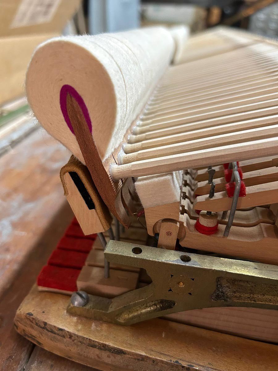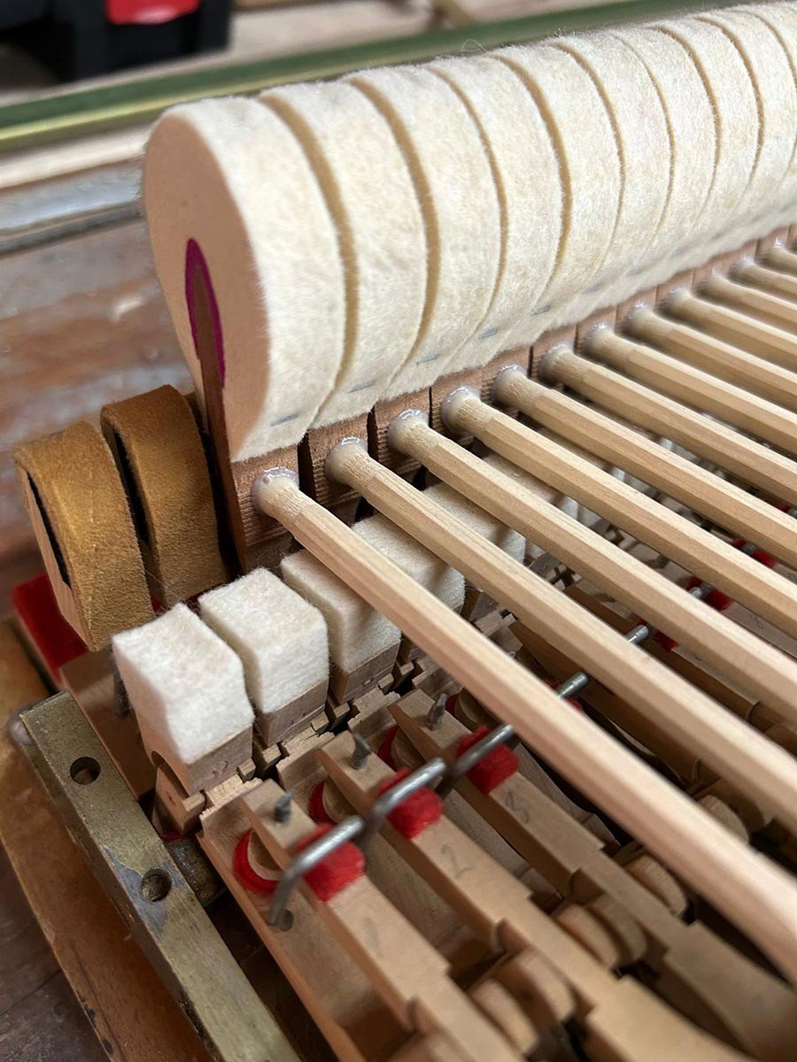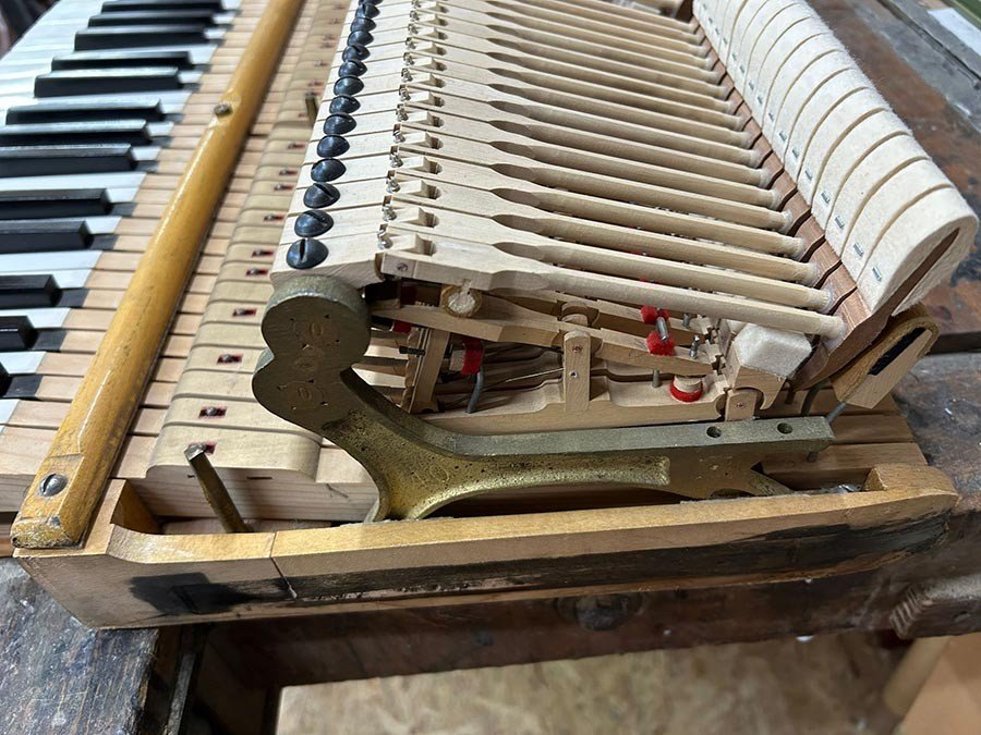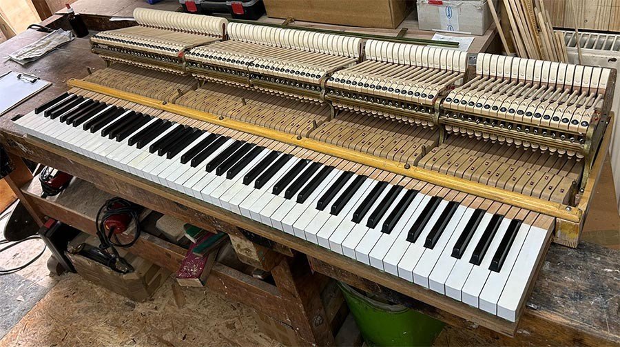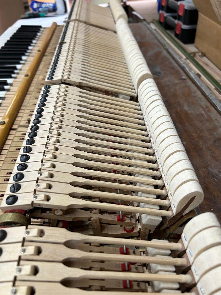 Frühere Arbeiten (nicht in unserer Werkstatt durchgeführt): Stimmstock getauscht, neue Stimmwirbel, neue Mittelage- und Diskantsaiten neue Hammerköpfe, neue Hammerstile, neue Dämpferfilze, Filze Unterdämpfung teilweise erneuet (Abhebe- und Prallfilz), Klaviaturrahmenfilze getauscht In unserer Werkstatt durchgeführte Arbeiten: Hammerköpfe abgezogen, Mechanik reguliert, Dämpfung reguliert, Spielgewicht ausgewogen, Tasten gereinigt und poliert, Dämpfer poliert. Optional: Gehäuse in Schelllack schwarz polieren Preis auf Anfrage |