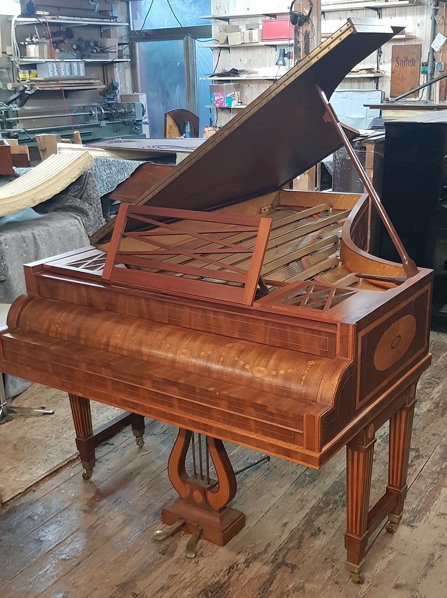 Weitere Informationen Dieser von Erard Paris, im Jahre 1901/’02, hergestellte Flügel ist ein atemberaubendes Beispiel des „Adam“-Stils. Das Gehäuse ist Mahagoni furniert mit kunstvollen Intarsien aus Satinholz, Parallel bespannt. Der „Adam“-Stil (oder Adamesque und ""Stil der Brüder Adam"") ist ein neoklassizistischer Stil der Inneneinrichtung und Architektur des 18. Jahrhunderts, der von den schottischen Architekten Brüdern Robert, James und John Adam geprägt und nach ihnen benannt wurde.