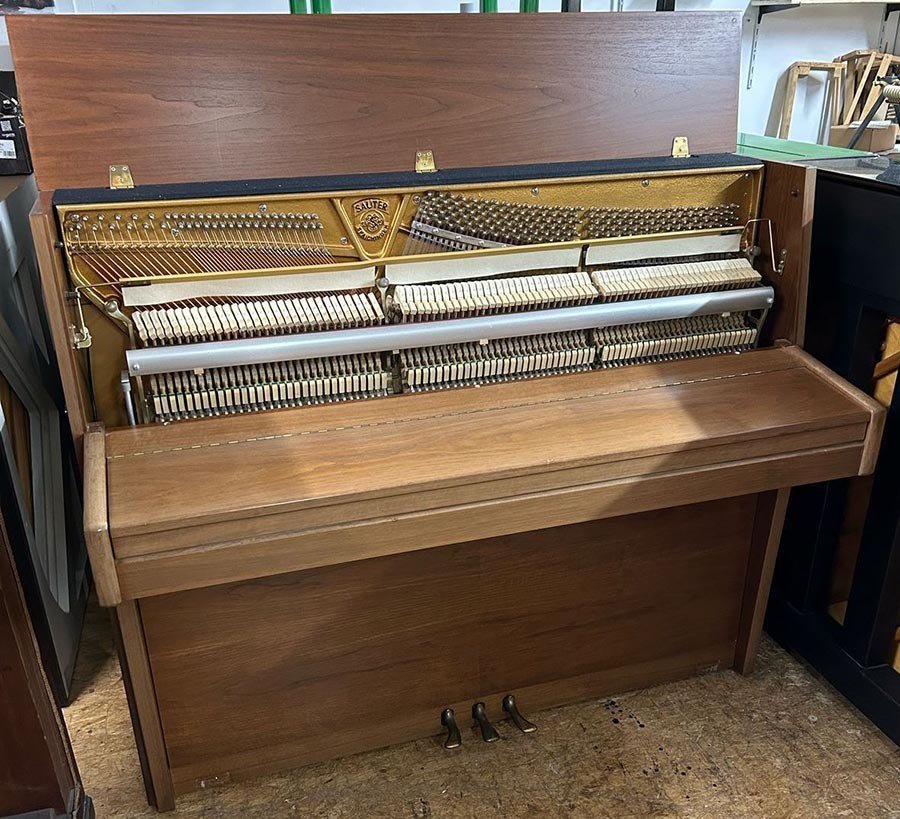 Weitere Informationen In unserer Fachwerkstatt wurden die Hammerköpfe abgezogen und die Mechanik reguliert. Ebenso wurden die Tasten geradegelegt und poliert. Auch die Messingteile sind poliert worden. Das Klavier besitzt außerdem einen Moderator.