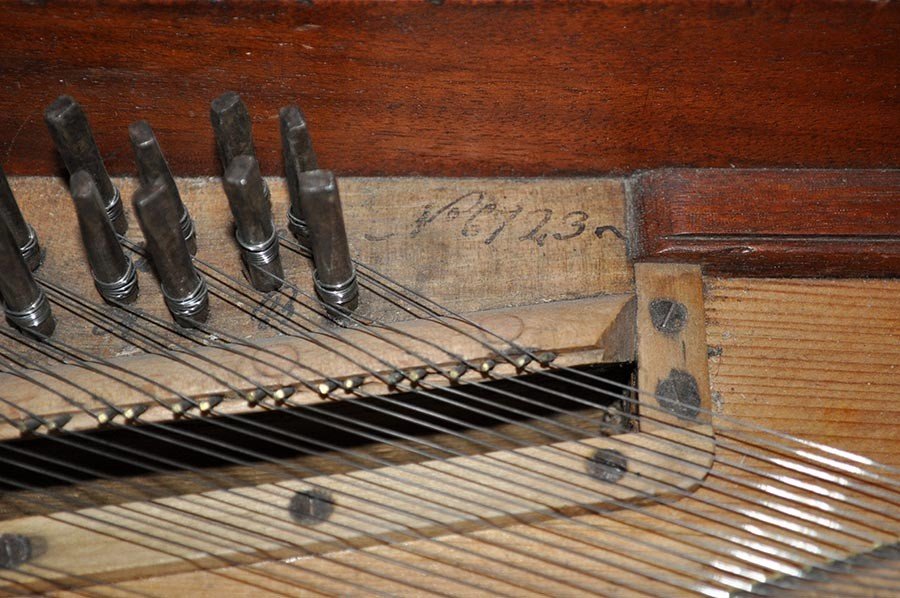 Weitere Informationen Broadwood Tafelklavier BJ 1802; Tonumfang 5 1/2 Oktaven, F1 bis c4; Einfache englische Stoßmechanik Mechanik ohne Auslösung, "Single Action"; 2-chöriger Bezug, tiefste Bassoktave mit Eisen umsponnene Messingsaiten, zweite Oktave reine Messingsaiten, übriger Bezug Eisensaiten; Kein Dämpfungsabhebungspedal, "Schwanenhalsdämpfung"; Resonanzboden ausgespänt, Steg repariert, Tasten gereinigt und poliert, Mechanik und Klaviatur reguliert; Bei einer früheren Überholung wurden die Hämmer neu beledert und die Saiten ausgetauscht.