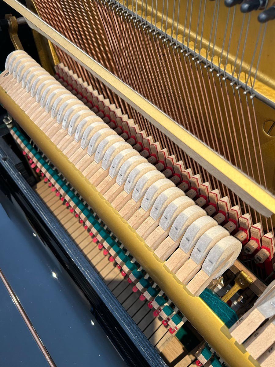 Weitere Informationen | In unserer Fachwerkstatt wurden die Hammerköpfe abgezogenund die Mechanik reguliert. Die Tasten wurden gerade gelegt und poliert, ebenso wie das Gehäuse und die Messingteile |